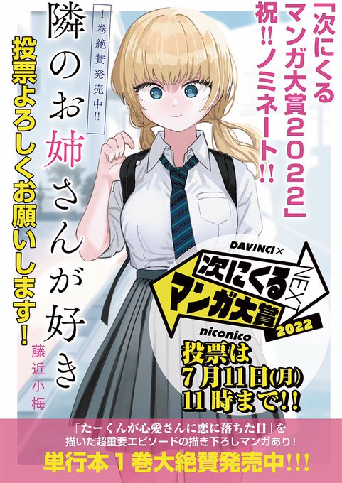 「隣のお姉さんが好き」が次に来るマンガ大賞にノミネートされました…!皆様の応援のおかげです、ありがとうございます!🎉
