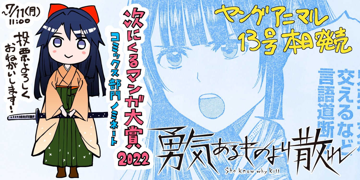 「#勇気あるものより散れ」が、ユーザー投票で大賞を選ぶ「次にくるマンガ大賞2022」コミックス部門にノミネートされました‼️‼️