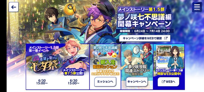 6月30日からのメインストーリー第1.5部「夢ノ咲七不思議編」開幕を記念して、特別なミッションやスカウトを開催❗