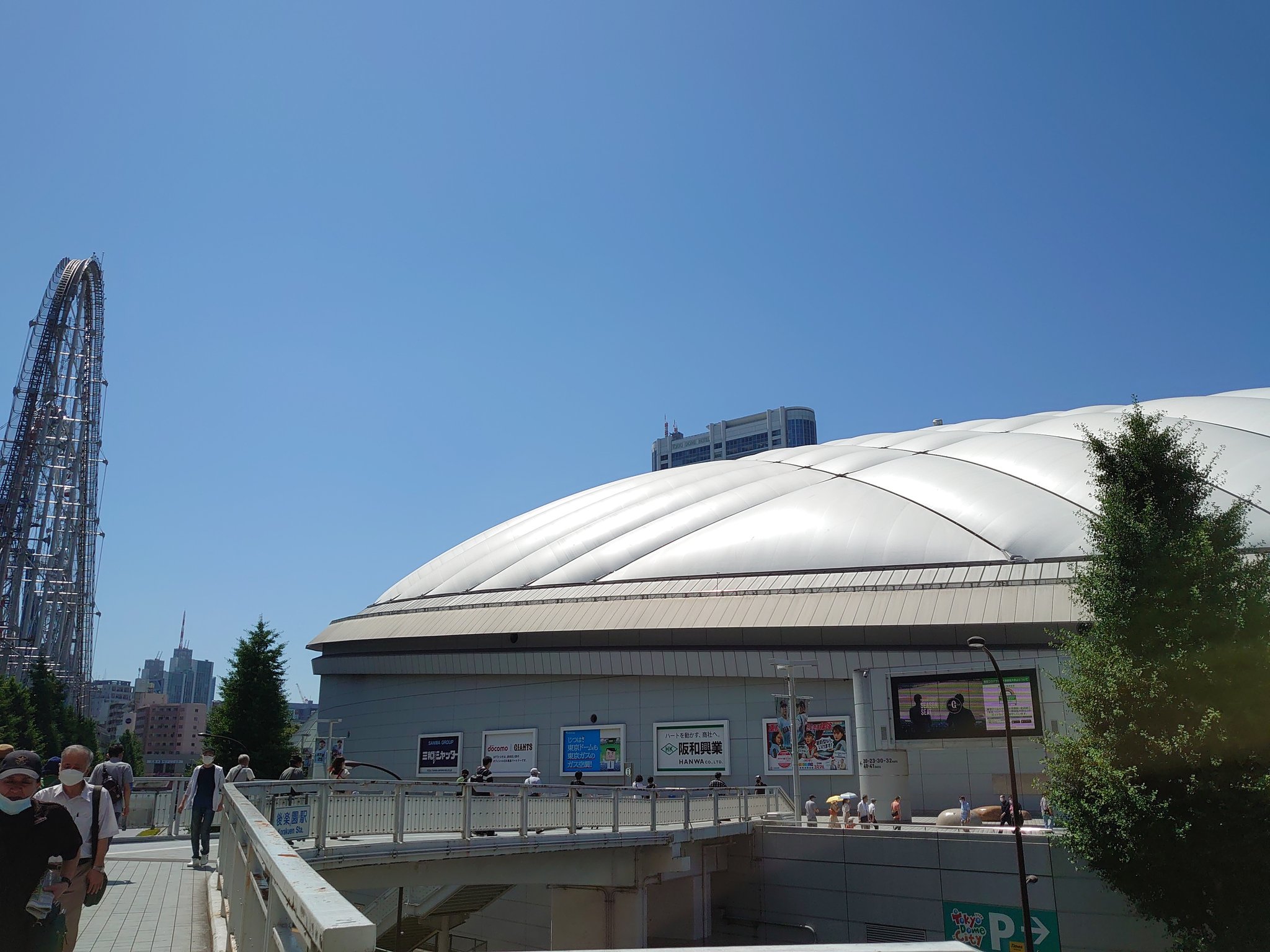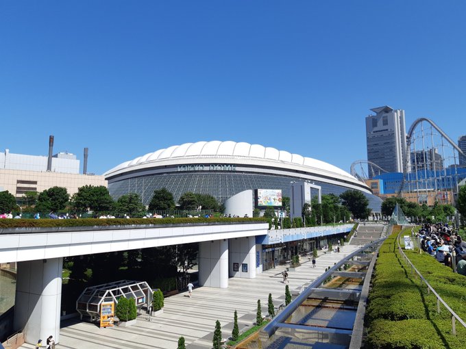 暑さに耐えられる自信がなくて、遅めに向かったら超ギリギリになってしまって.... 日の沈みかけたドーム前です...😃笑