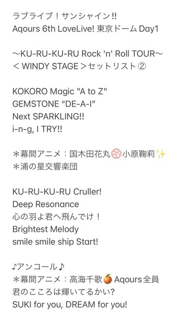 ㊗️開催🎉 Aqours 6th LoveLive! ~KU-RU-KU-RU Rock 'n' Roll TOUR~<WINDY STAGE>🍃🍊⚓️🌸💮🍭😈🐬♦️✨