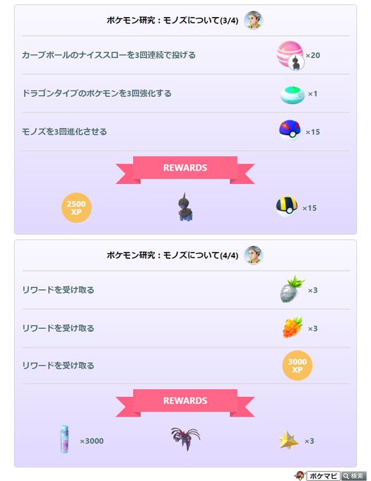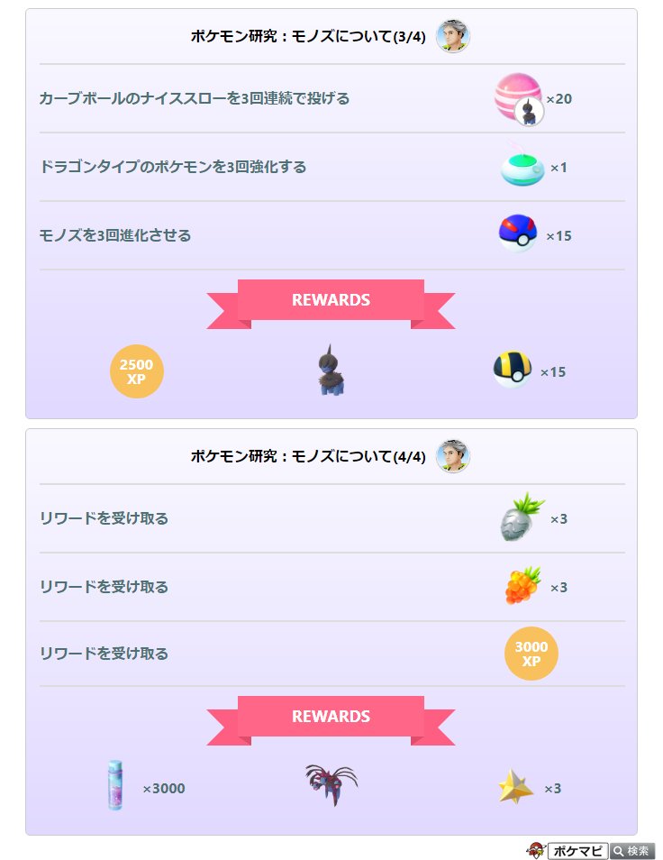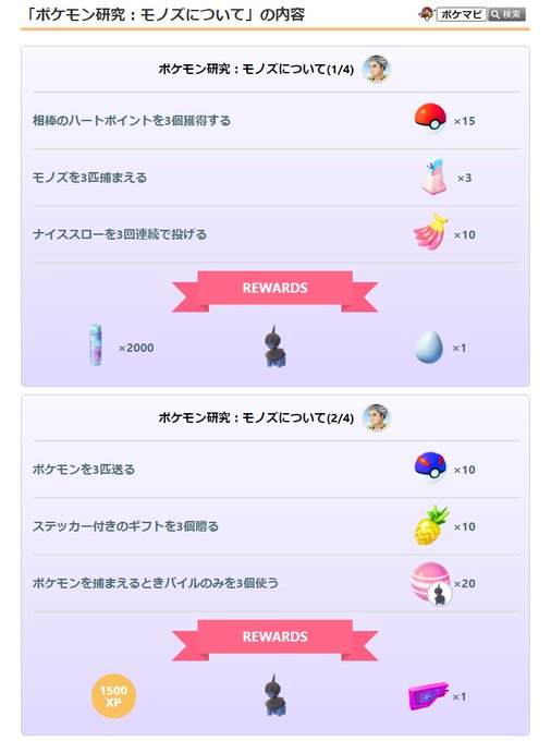 「モノズのコミュニティデイ」の有料スペシャルリサーチ「ポケモン研究:モノズについて」の内容が確認されています🔍
