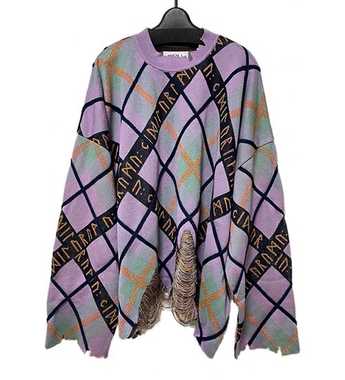 ルーン文字を織り込んだチェックニット