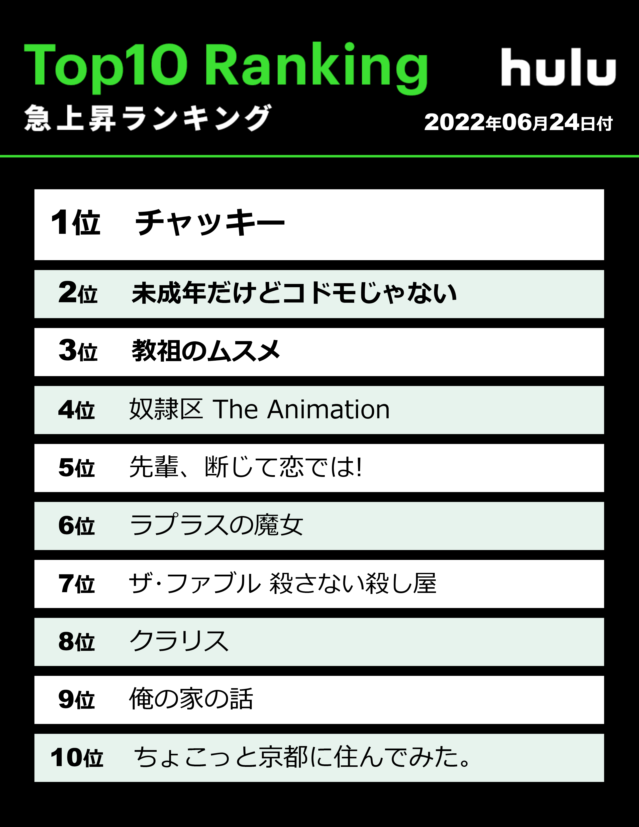 #Hulu 国内ドラマランキング
