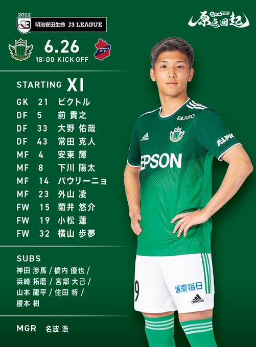 御柱祭記念マッチに諏訪育ちの #小松蓮 選手がスタメン!