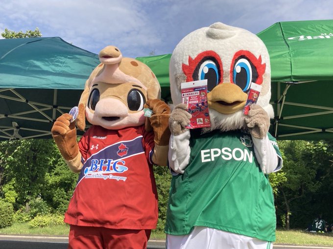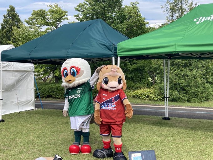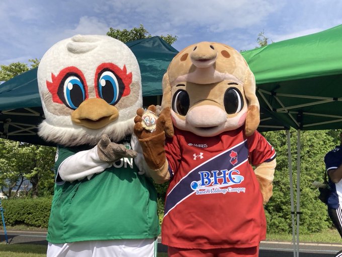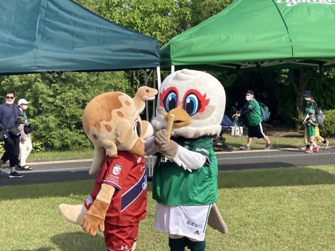 いわきFCオフィシャルマスコットの #ハーマーとドリー がガンズくんひろばに駆けつけてくれました👏👏
