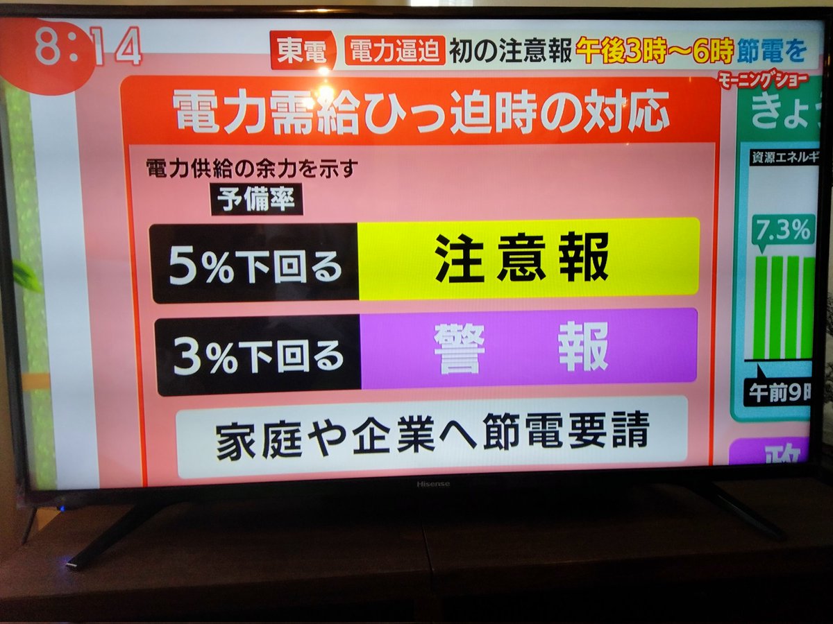 夏の #電力需給ひっ迫注意報 って晴れた昼間の話だから、太陽光発電ならガンガンに発電力上がる条件ってことでしょ?😇