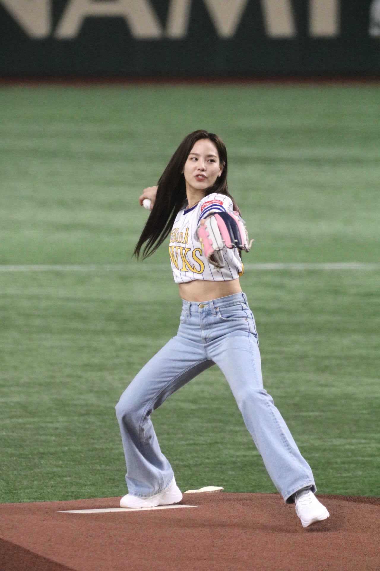 #鷹の祭典 #NiziU #NINA #ニナ #Softbank #ニナちゃん #鷹の祭典2022in東京ドーム #NiziU始球式 pic.twitter.com/Sm7rzNBFKn