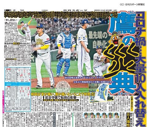 「#鷹の祭典」は、「鷹の災難」から始まった。ソフトバンクの恒例26日に和田ら計5人が新型コロナウイルス陽性の疑いとなったが、この日、さらに増えて大量8人が陽性判定を受けた。緊急で大幅なメンバー変更を強いられ、苦戦となった。