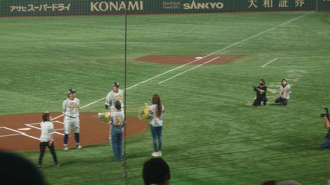 試合前は、NiziUのみんなが球場を盛り上げ、セレモニーではたくさんのダンサーさんが元気を届けてくれました♪♪