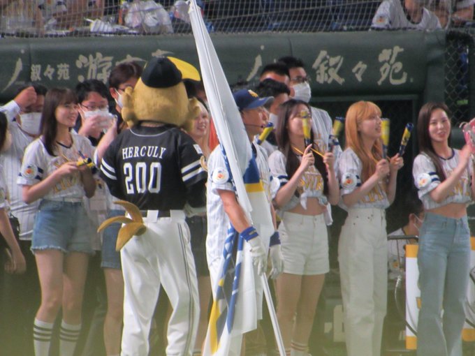 球場には #NiziU が登場して、MAKOさんが始球式を行います⚾