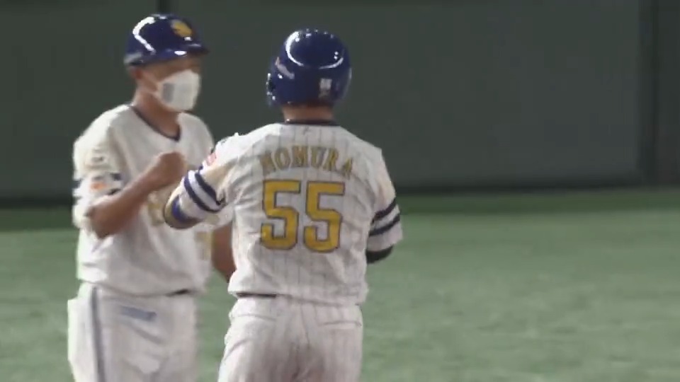 【現在 8回終了】ソロホームランで追加点を許しましたが、代打・野村大選手のヒットから作ったチャンスで周東選手がタイムリーヒット!1点を獲得!