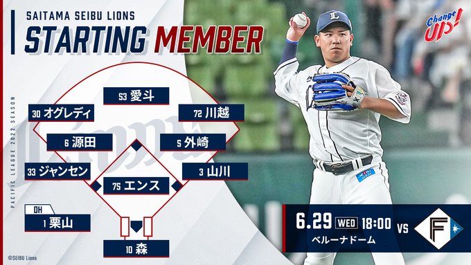 本日18:00の #ファイターズ 戦スタメンはこちら