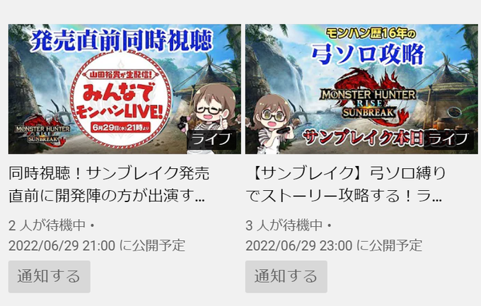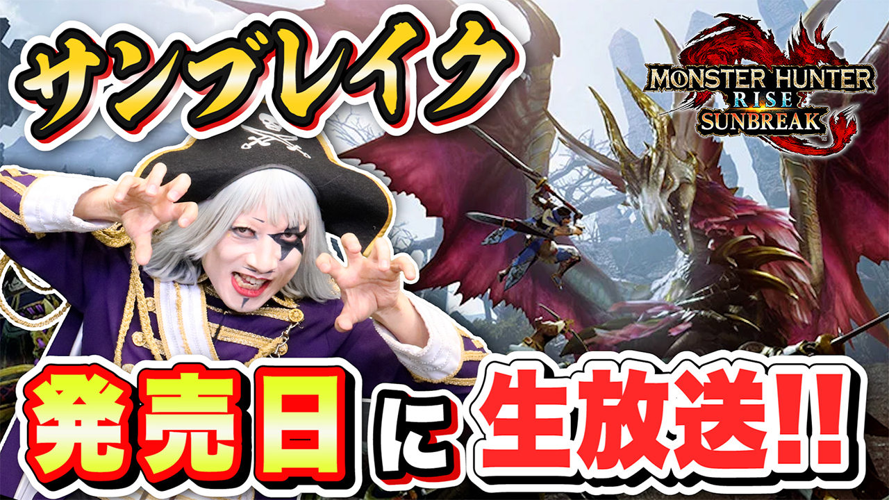 明日は『モンスターハンターライズ:サンブレイク』の発売日ということで、緊急生放送を予定してます!
