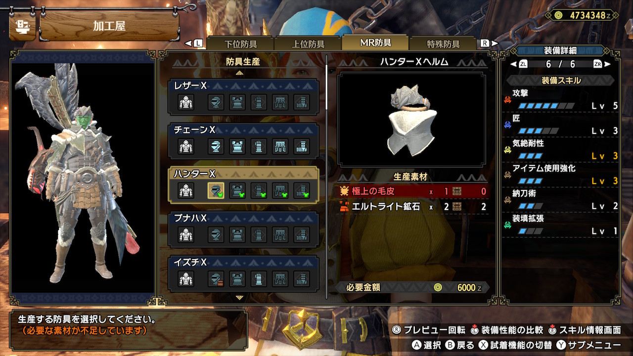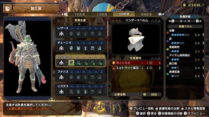 近接のサンブレイク序盤は、ハンターX一式が作りやすくスキルも優秀です!