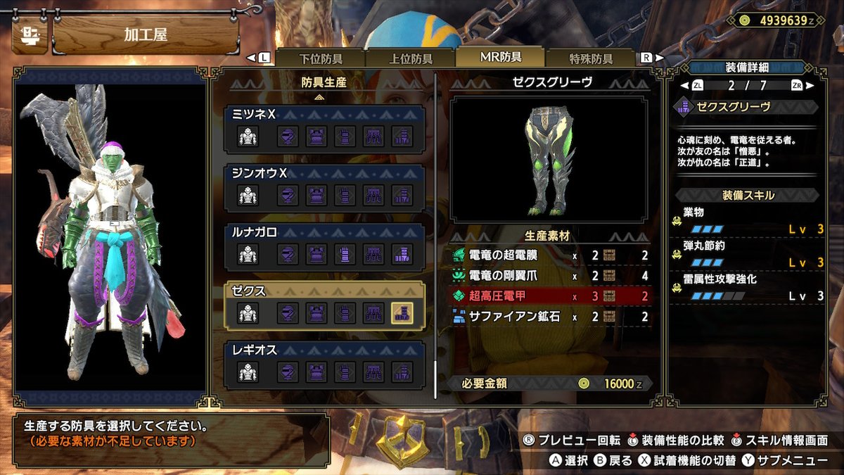 とりあえずマスターランク星3まででナルガ太刀更新、ひるみと剛刃1もついてる。これで最後まで登りたい。