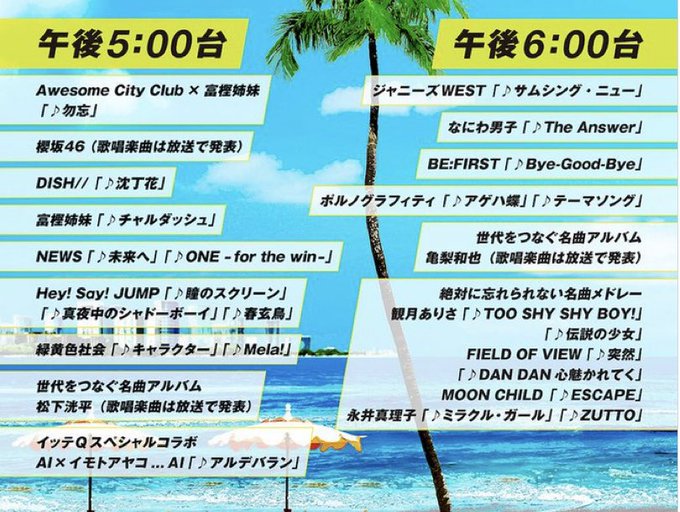 #SixTONES の出演時間はこちら🌴