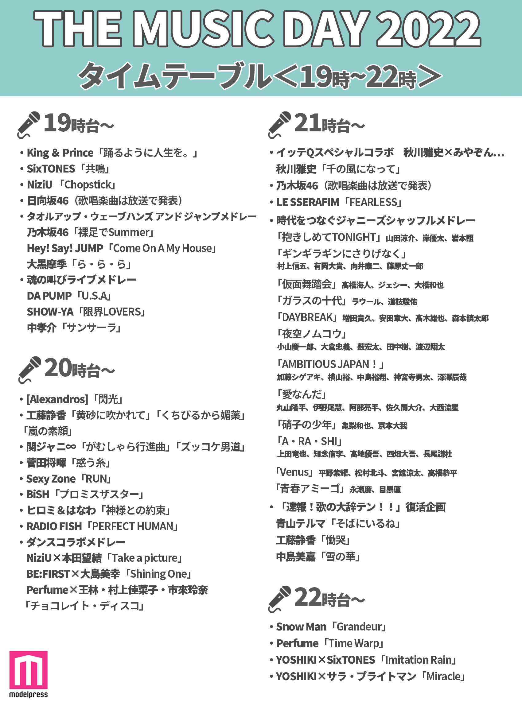 THE MUSIC DAY:タイムテーブル公開 「ジャニーズシャッフルメドレー」は午後9時台 #MUSICDAY #ジャニーズシャッフルメドレー #櫻井翔 mantan-web.jp/article/202206…