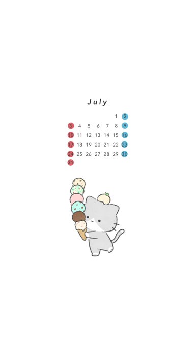 #7月 #カレンダー #猫 #猫好きさんと繋がりたい #イラスト #イラスト好きな人と繋がりたい #アイス pic.twitter.com/6ReREmmk4m