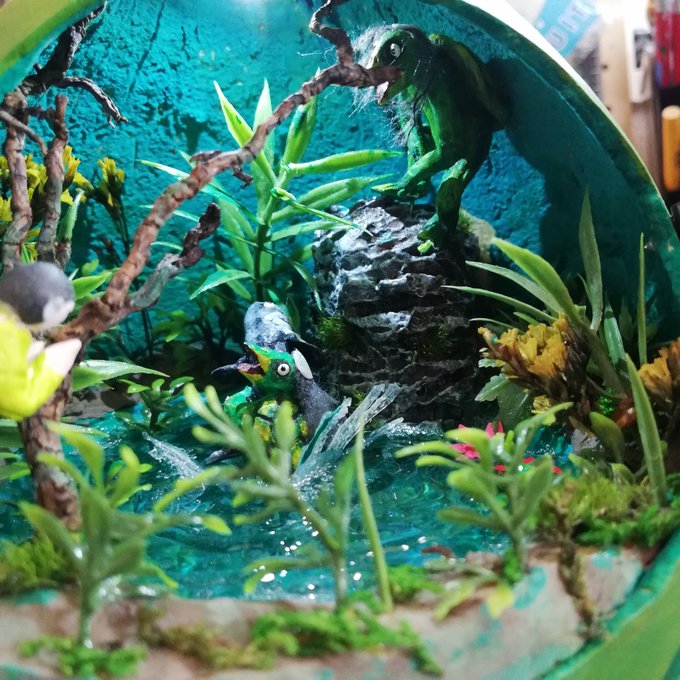 1つのテーマを決めて、そこから小さな世界を粘土やレジンを使用して制作中です*ˊᵕˋ)੭