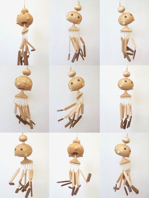 今回はチリーンのウッドチャイム木彫りました🎐頑張っていい音鳴らそうと荒ぶってるチリーンを応援してあげてください✨ pic.twitter.com/bdZemERzQy