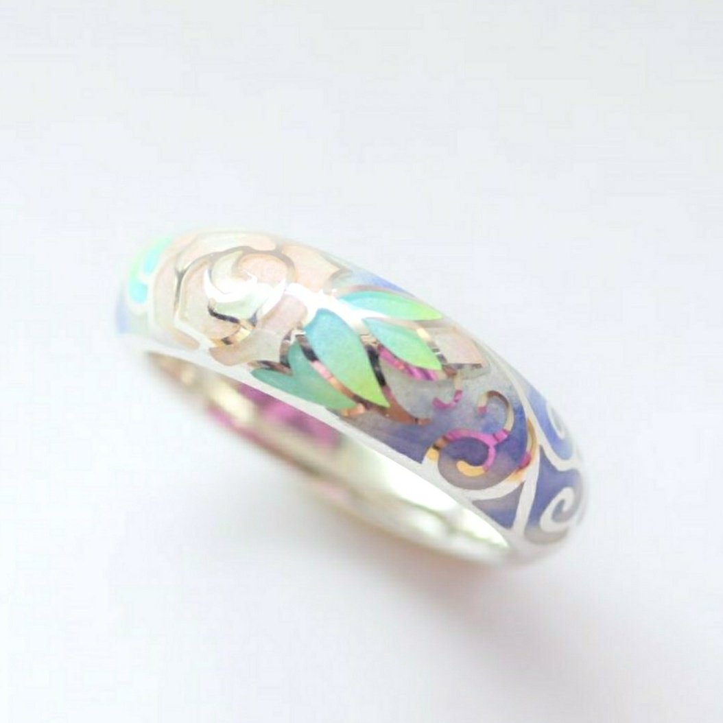 砂状のガラスを銀にのせ、窯で焼き付けた【七宝焼】の作品を中心に作っています。
