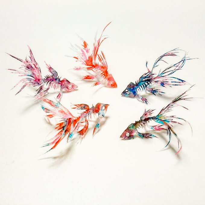 プラバンを使い手描き手切りでアクセサリーを作ってます。絵柄を描くだけでなく、重ねたり曲げたりして奥行きや立体感のある作品にも挑戦しています💪身につけたり眺めたりして心がホクホク幸せになってもらえると嬉しいです💓 pic.twitter.com/fqkf1zbTQ2