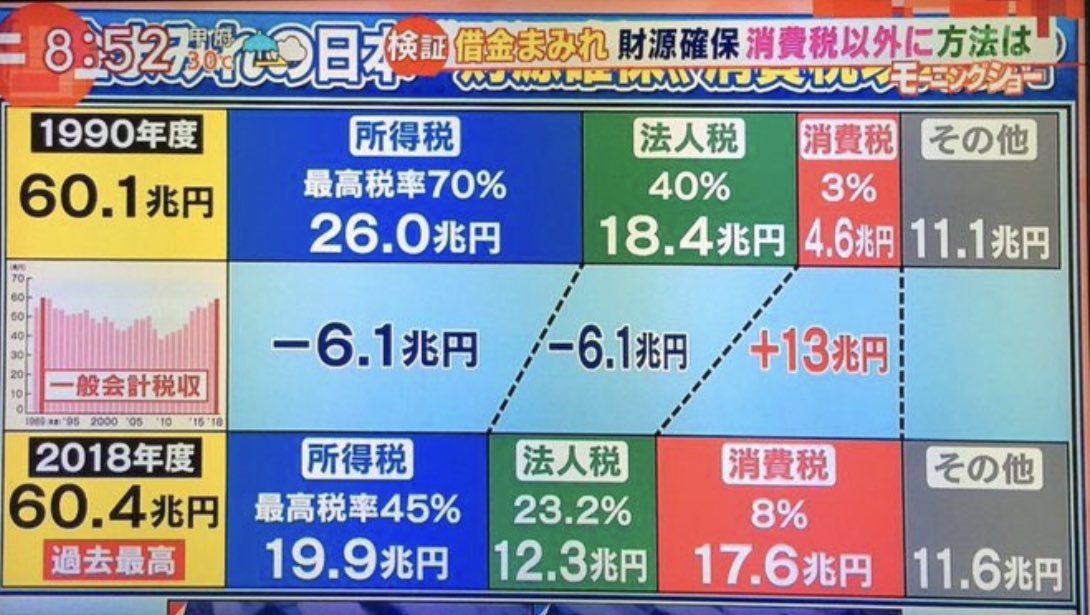 元々、消費税は36年前に経団連が「直間比率の是正」を訴えて、そこから生まれたもの。政府が「献金と組織票」の見返りに、法人税を下げる為の穴埋めとして消費税が上げられてきた事実はいまや明白。社会保障の為に必要であるといった話は後から付けたゴマカシ。 #消費税が社会保障の安定財源は国のデマ twitter.com/mitakadaidaisu…