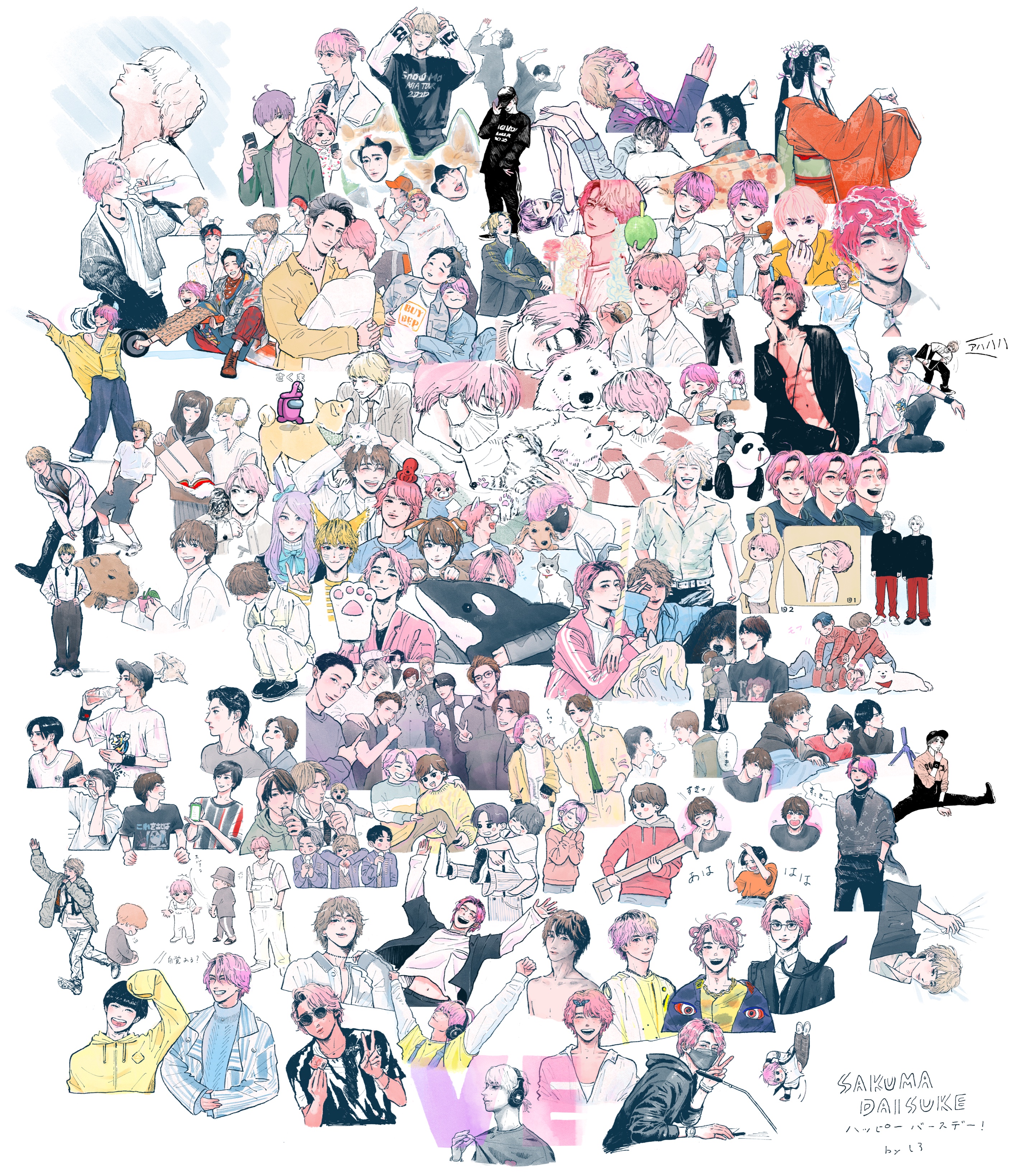 真ん中は動物とさくまシリーズ!動物番組レギュラー出演がいつか決まったらなと願いながら描きました🐶