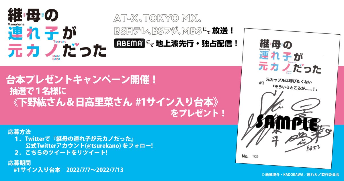 #1 放送を記念して、#下野紘 さん&#日高里菜 さんサイン入り#1 台本を抽選で1名様にプレゼント!