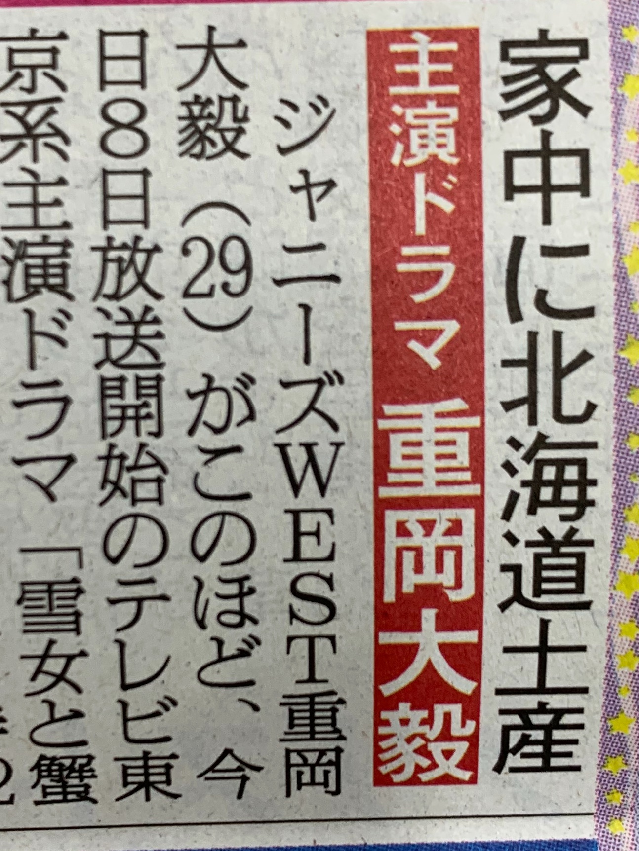 #重岡大毅 #ジャニーズWEST #入山法子 #勝村政信 #雪女と蟹を食う @tx_yukikani
