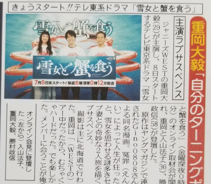 #重岡大毅 #ジャニーズWEST #雪女と蟹を食う #入山法子 #インタビュー @tx_yukikani @norikoiriyama