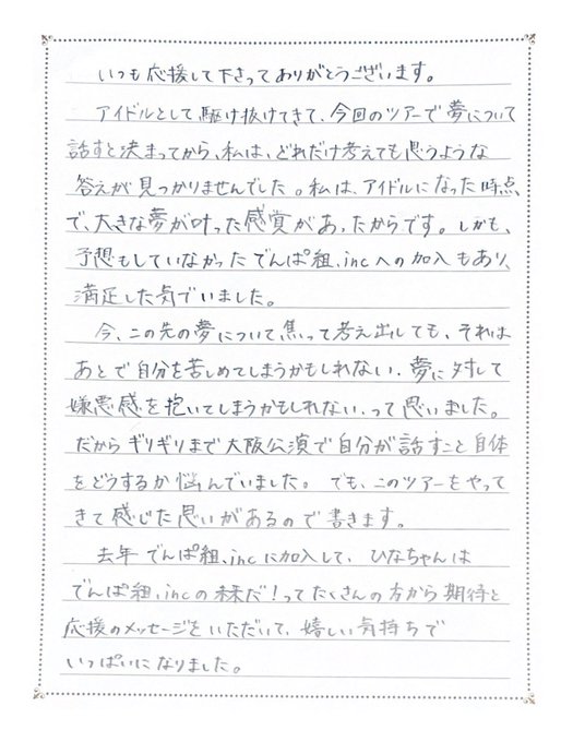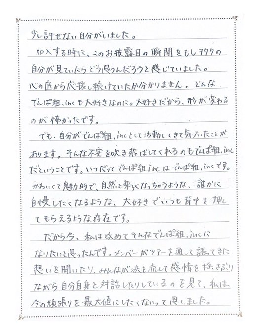 #DEMPARKツアー 千秋楽❣️ありがとうございました‼️MCではみんなの素晴らしさと感謝を伝えたくラブレター💌を読みました。このツアーで改めて、みんなの愛に勝るものは何もないと感じました。でんぱ組は、これからもたくさんの夢を見て、それを叶えるグループでありたい。みんなの力を貸して下さい‼️ pic.twitter.com/XTgYvvejCi