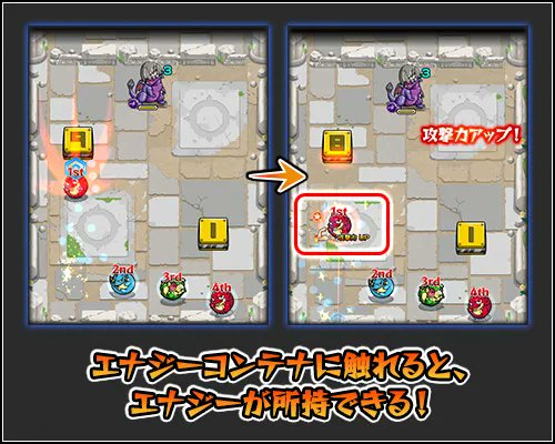 エナジーコンテナに手番のモンスターがふれると、エナジーが所持できる!