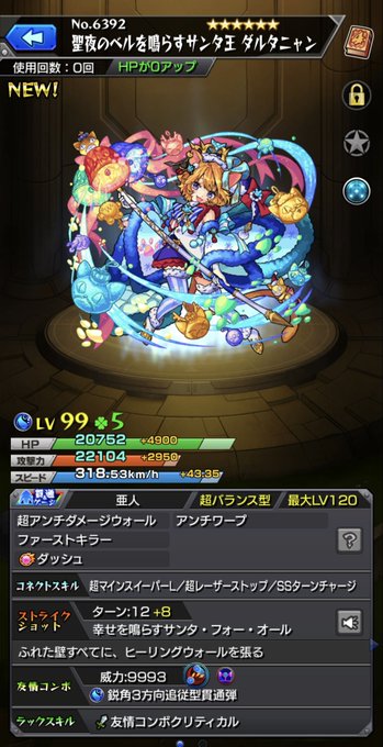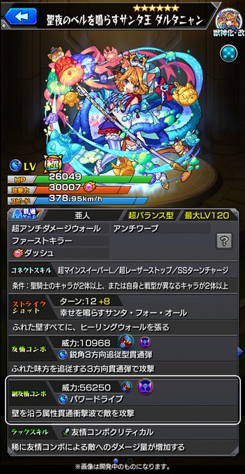クリスマス仕様の「聖夜のベルを鳴らすサンタ王 ダルタニャン」は、獣神化・改「ダルタニャン」と同じステータスを所持!(「誇り高きサンタ王 ダルタニャン」からのみ獣神化・改が可能です。)#モンスト pic.twitter.com/RzXPfQcSgJ