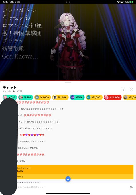 壱百萬天原サロメ嬢、7/9初の歌配信セトリ