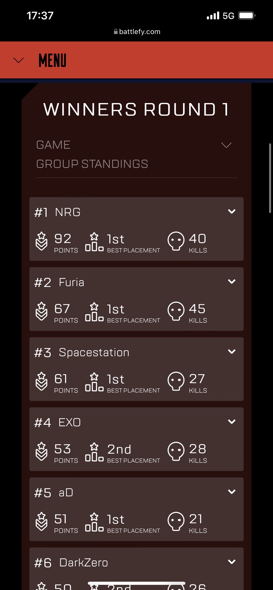FURIAが1位!!