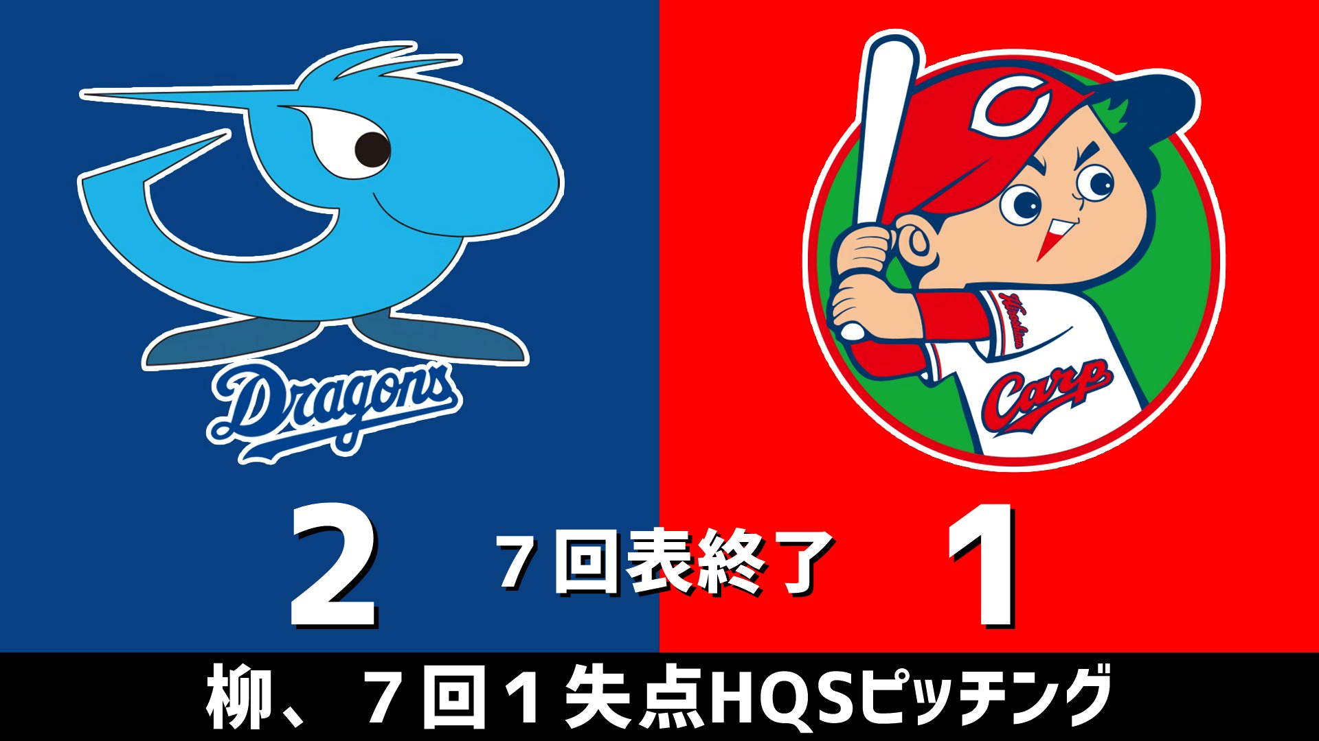 7回表終了 柳、7回1失点HQSピッチング