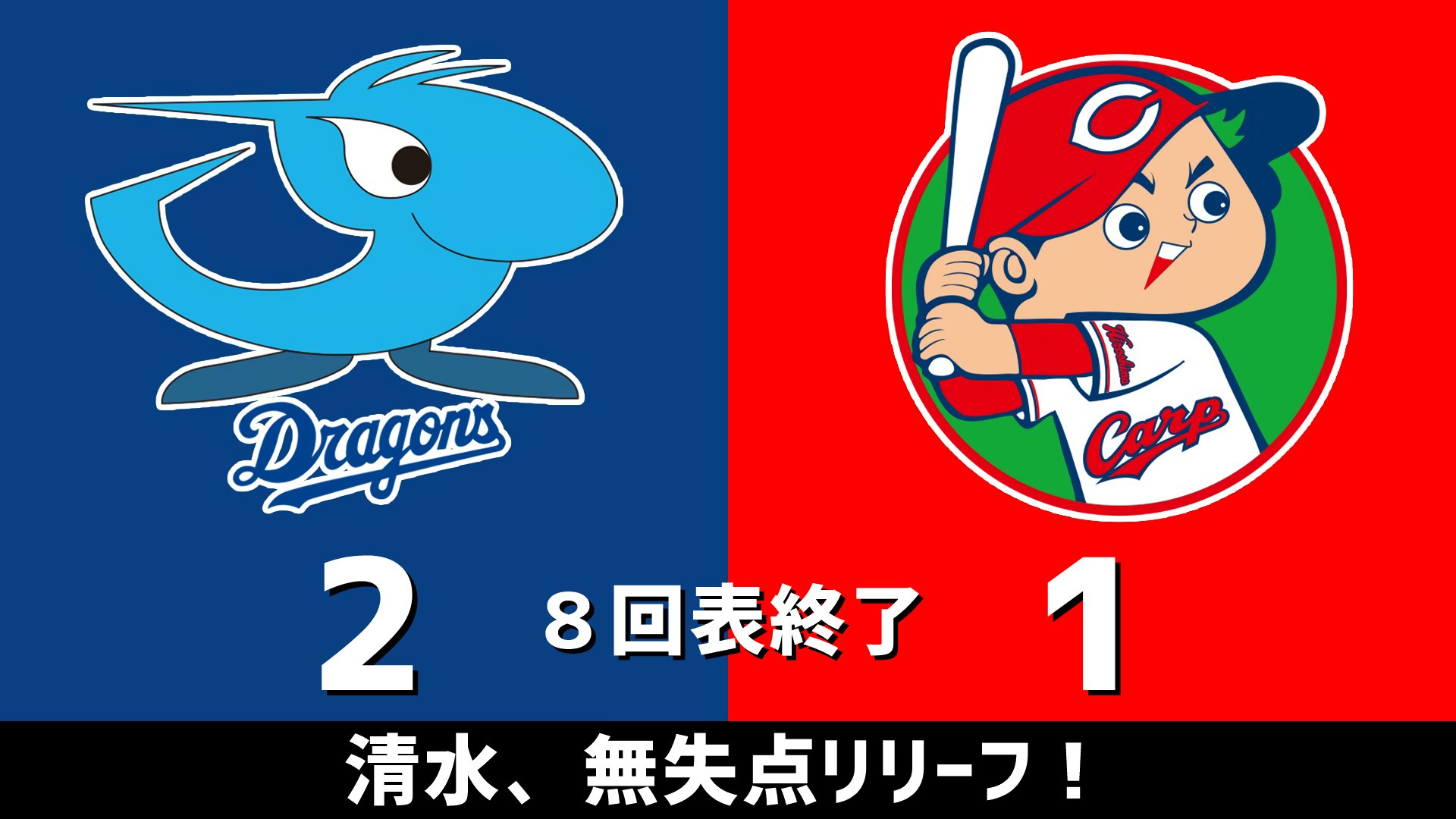 8回表終了 清水、無失点リリーフ!