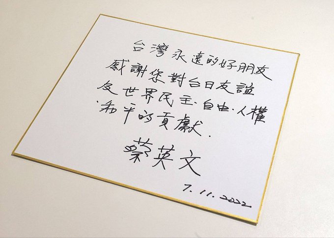 台日関係の発展のために尽くした安倍晋三元首相の貢献に感謝します。安倍元首相がかつてピアノで弾いた東日本大震災の復興支援曲『花は咲く』が、困難に立ち向かい、支え合って生きていこうとする気持ちを描いているように、台湾と日本も努力を続け、もっと多くの花を咲かせていきたいと願っています。 pic.twitter.com/NQVDqN9Pgx