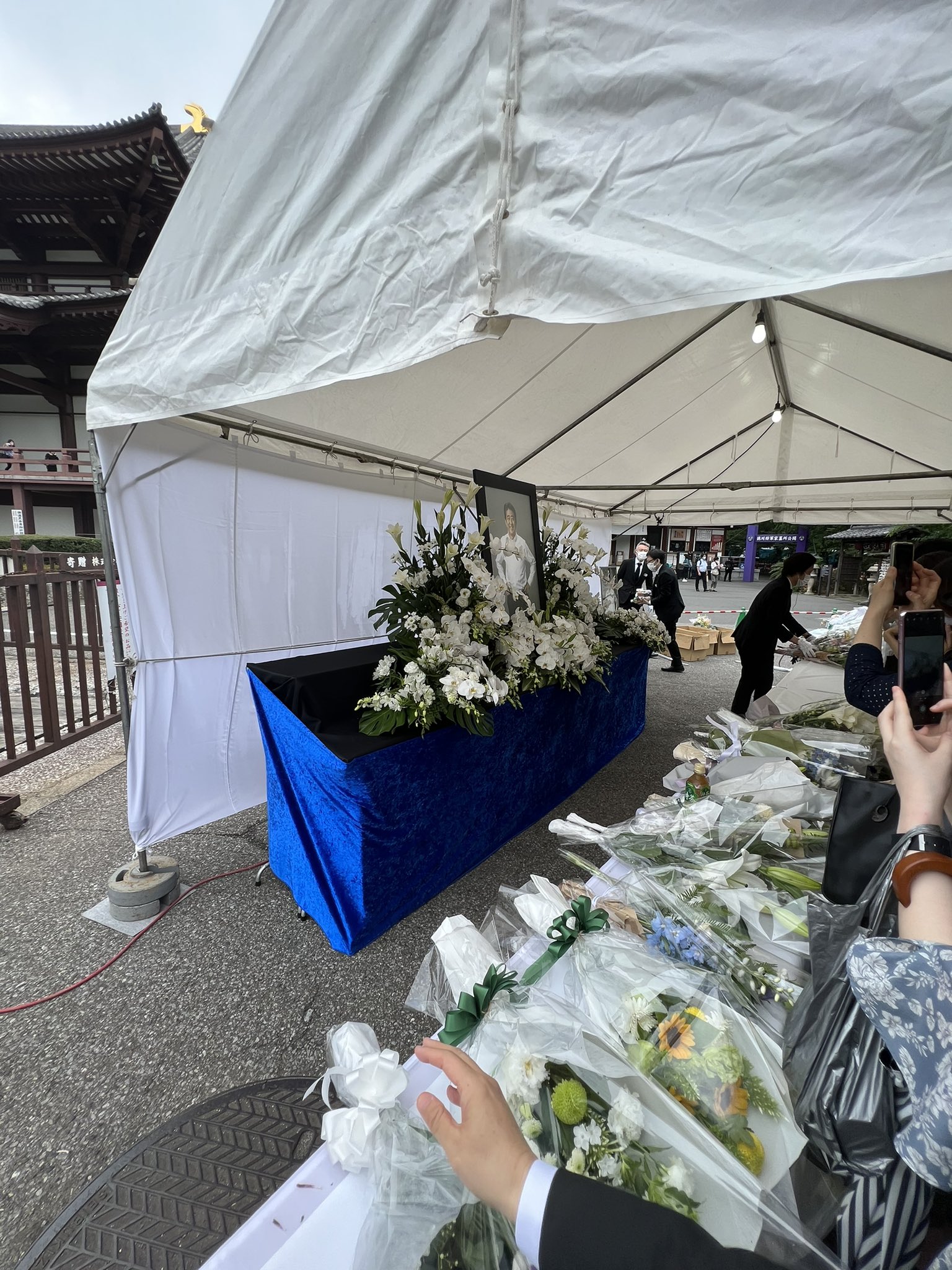 今日の増上寺の一般献花はあまりに人が多くなったため、予定より早く打ち切りになったとのことです。国会近くの永田町にある自民党本部での献花をお勧め致します。