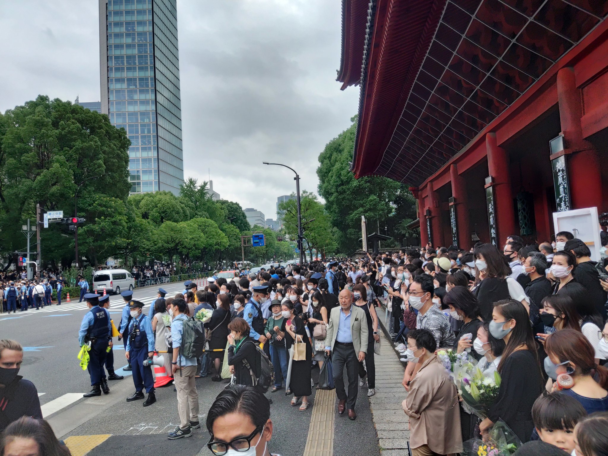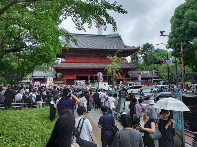 本当に人が多かったです。殆どバグ状態。独裁国家ではなく 民主主義国家、しかも日本のようなノンポリ層が多そうな 国のリーダーの死で これ程人が集まるのかと驚きました。しかも 女性 若者も多い。メディアがアホな事を煽ってるだけで、これが民意ですよ。