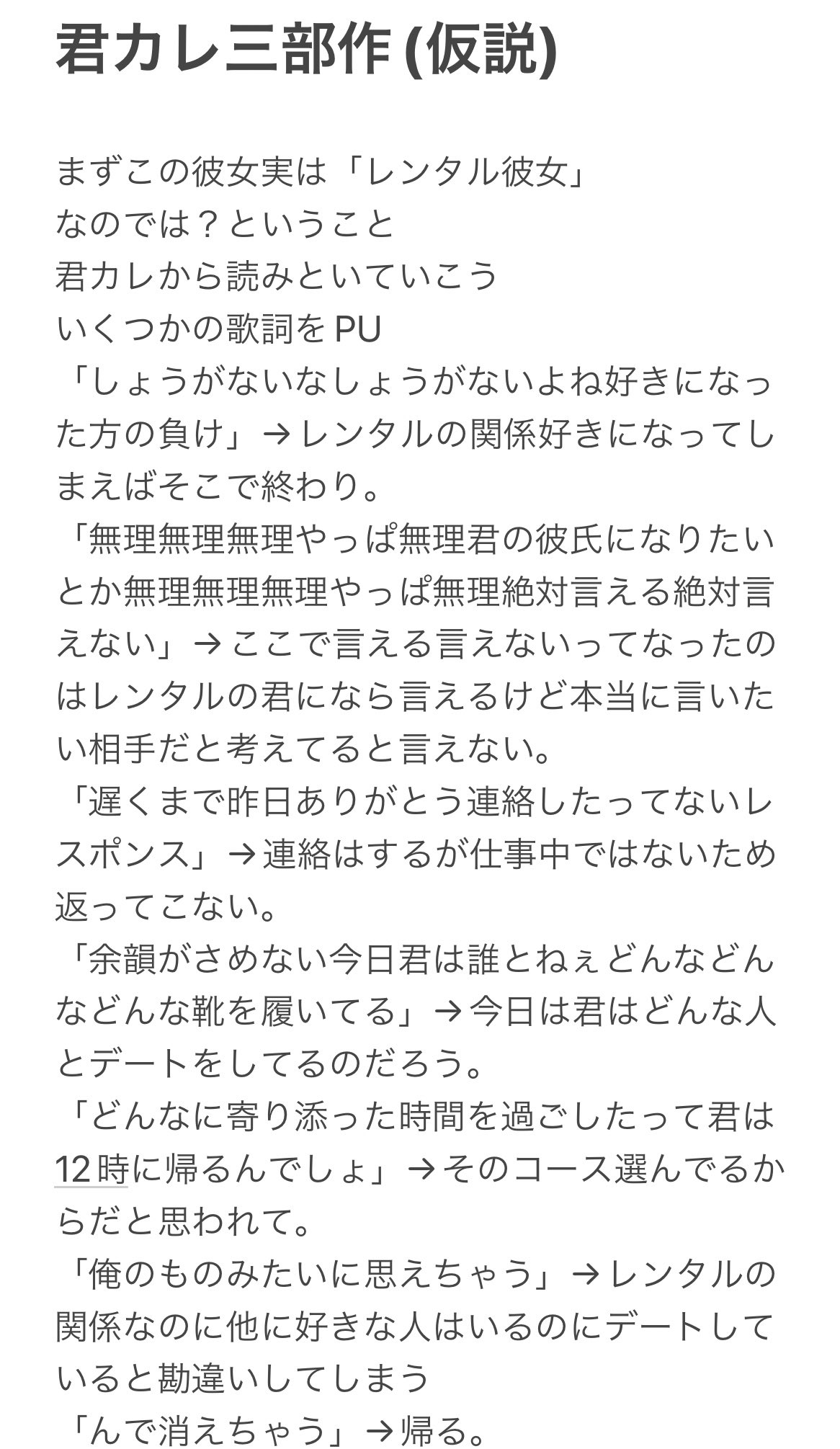 の女の子目線の歌が聞いてみたい。女の子たちが集まった時に「そういえばこの間話した人いるじゃん?あの人さー…」って話のネタにされてそうだよね……(小声)