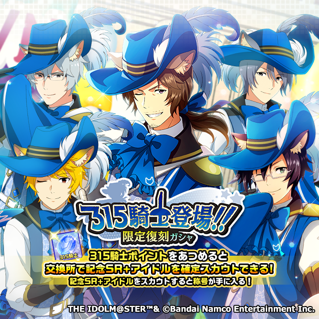 プロデューサーさん、「315騎士登場!!限定復刻ガシャ」の開催は7月18日(月)16:59までですよ。