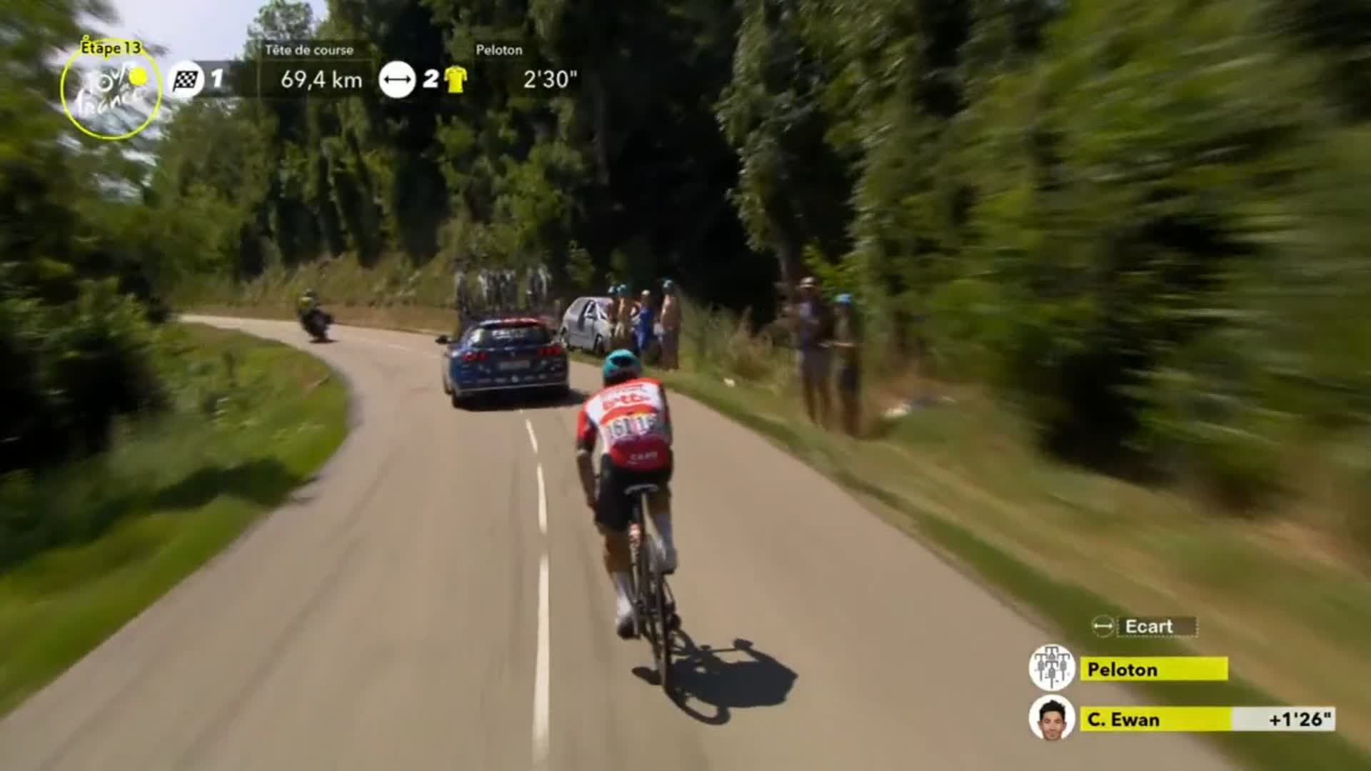 アルペシンのチームカーがユアンをフォロー