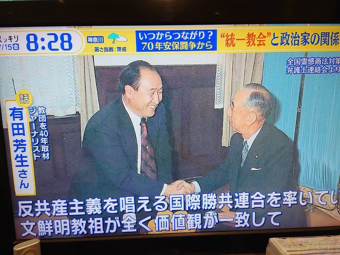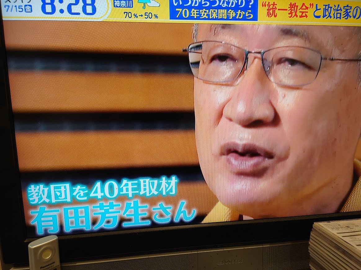 録画した #スッキリ 視聴。45分近い尺を取って、スタジオとインタビューで構成、教団の阿漕な手口と被害の深刻さ、長年にわたる政権との関わりまで踏み込んだ濃い内容。有田芳生の出番は短いが、なにゆえに政治家にとって統一教会が有難いかを端的に指摘していた。 pic.twitter.com/ke5ZMBNXkY