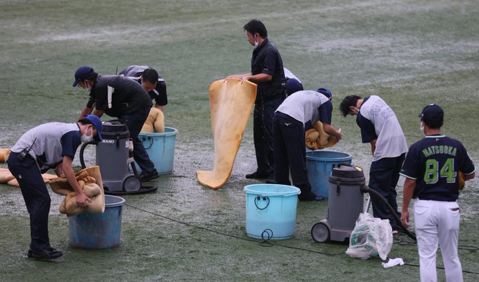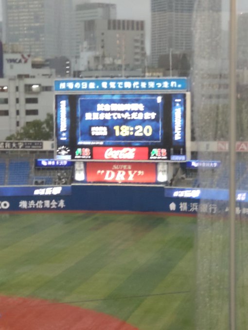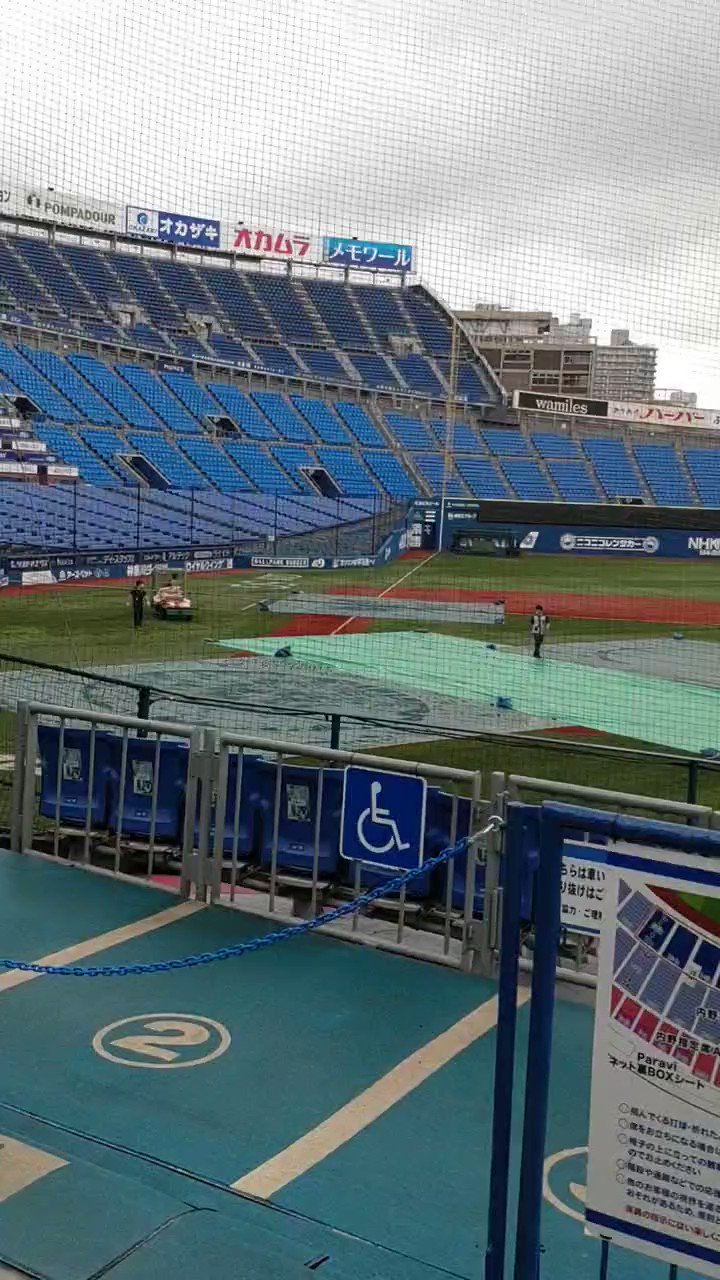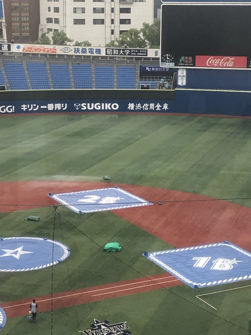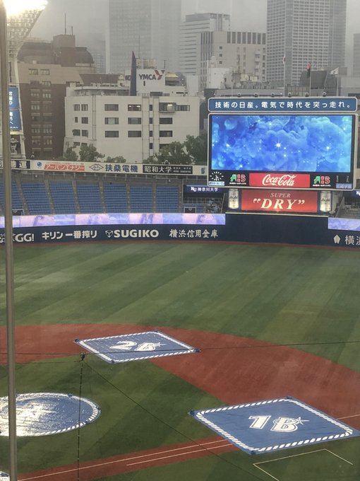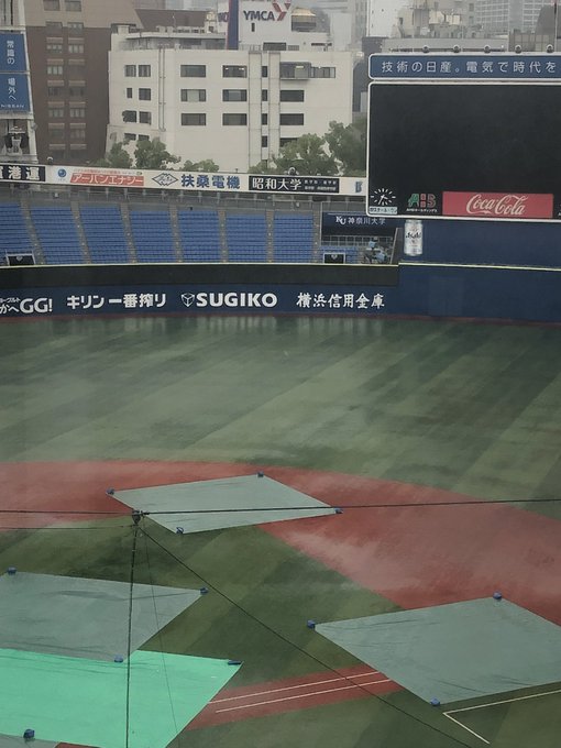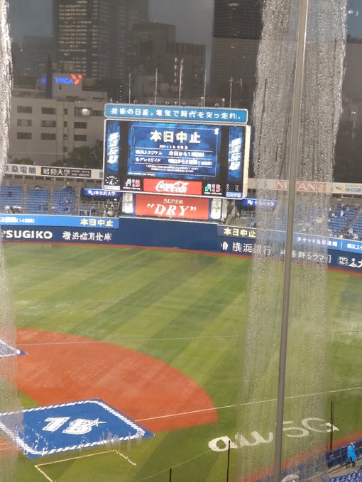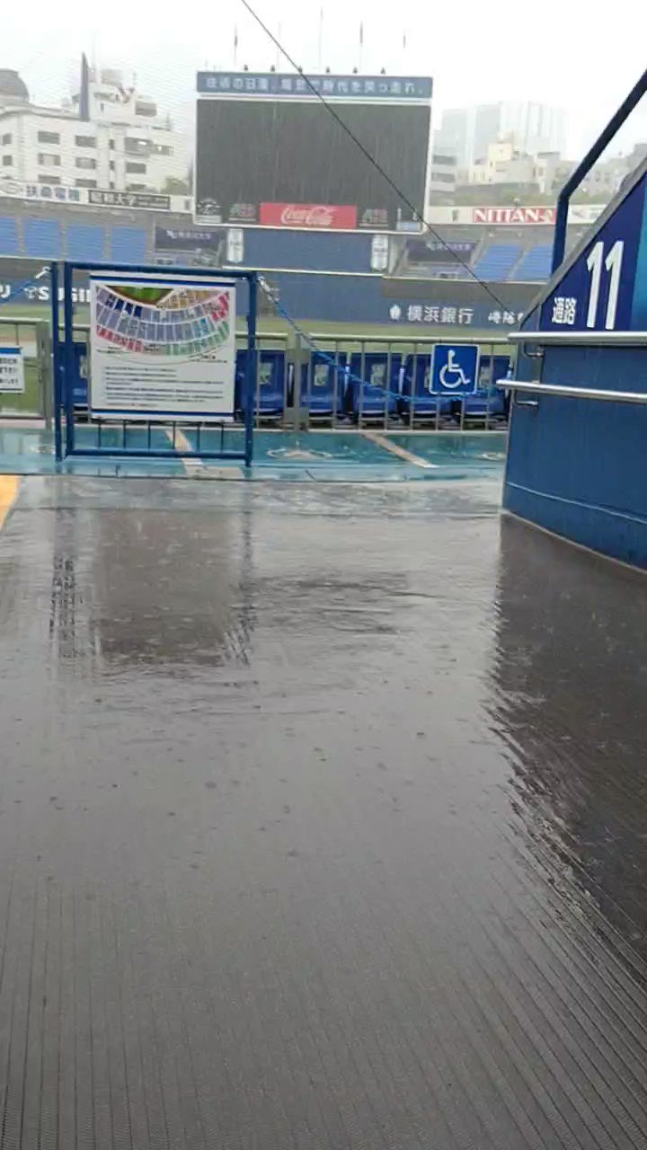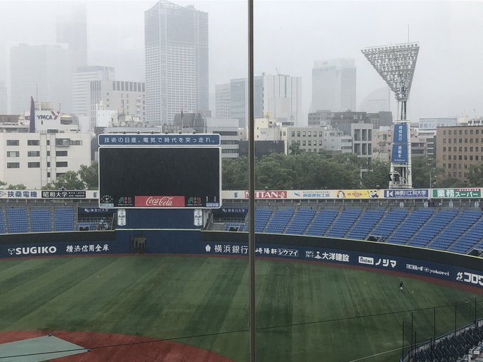 16時半現在、ハマスタは小雨になった後、再び大雨が降っています☔️