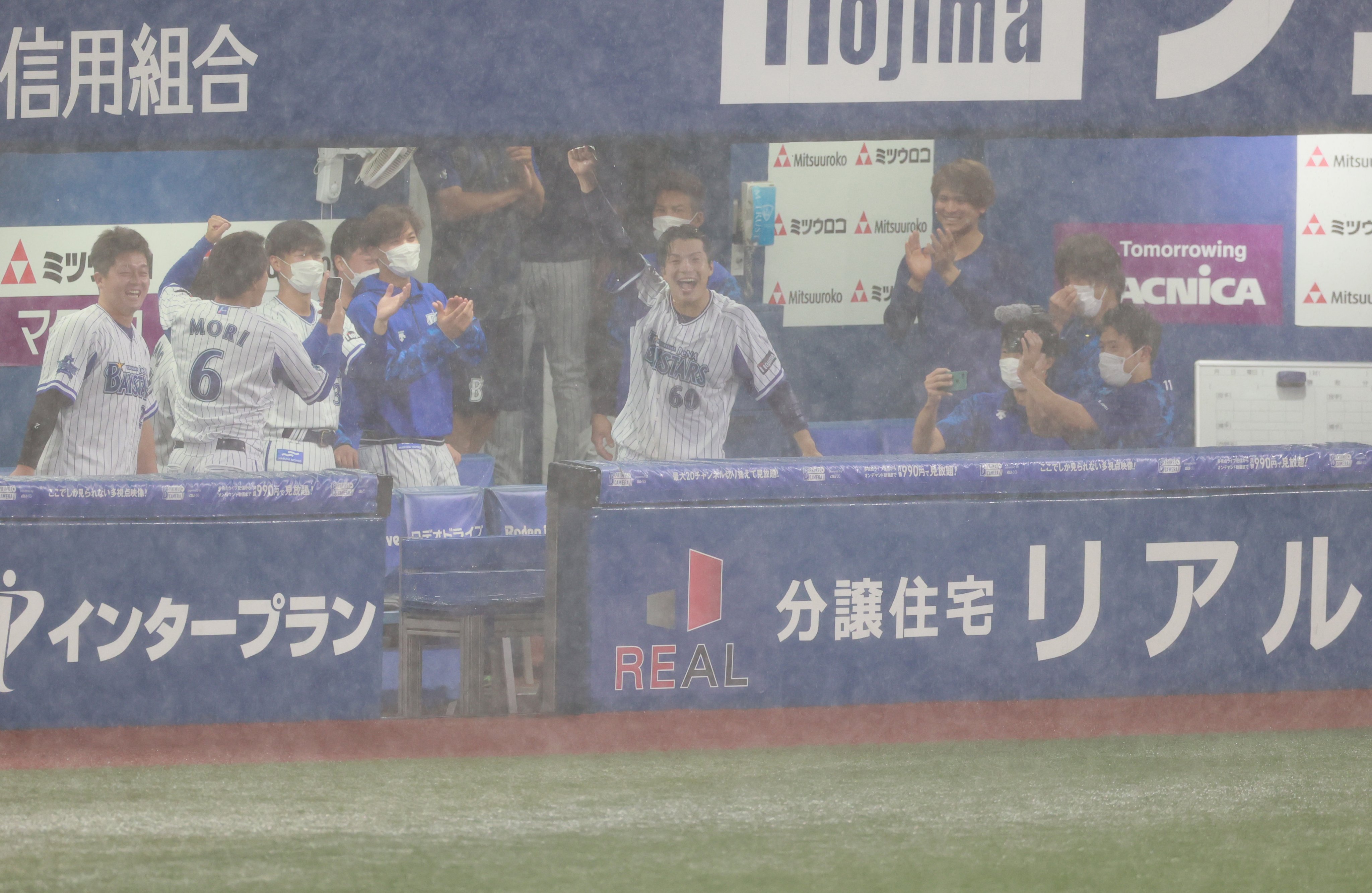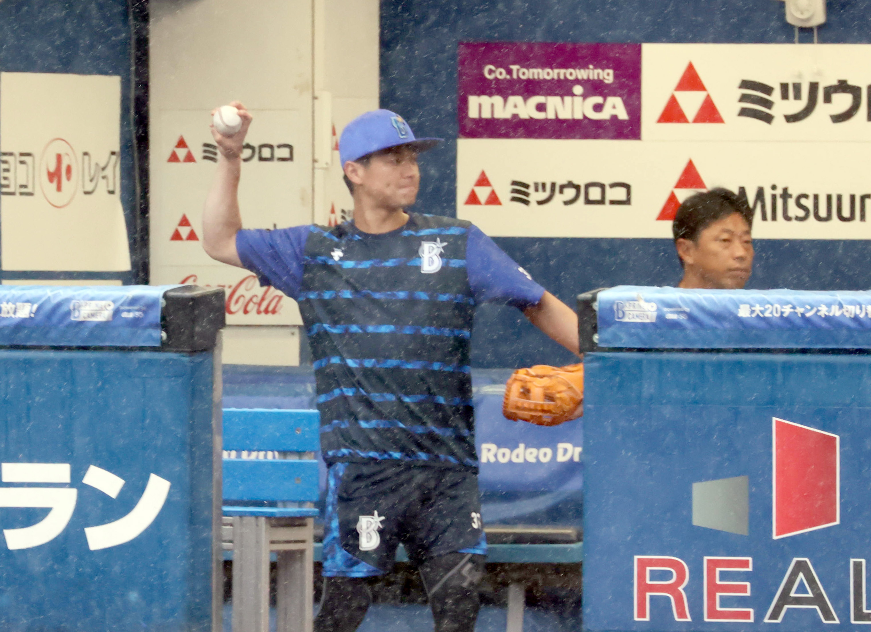 現在、ハマスタは大雨が降っています☔️キャッチボール中だった今永昇太投手は、足早に室内へと引き揚げました。