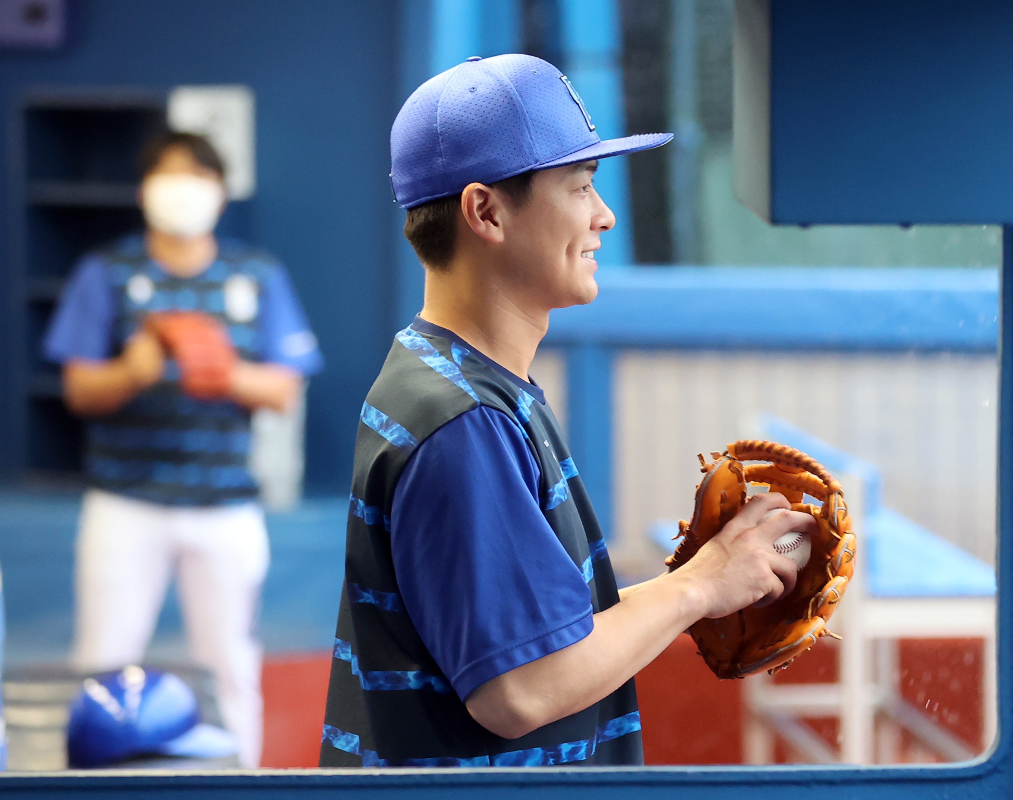 坂本裕哉投手が、キャッチボールで屋外へ⚾️