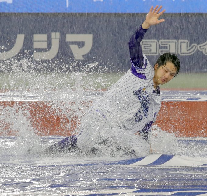 ヘッドスライディングを披露し、開幕戦の自らのミスも再現し、スタンドを沸かせました👏